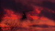 CLEAN: Shows exterior shots helicopter landing at sire of siege in Dammartin en Goele with bright sunset in the background. on January 09, 2015 in Dammartin-en-Goele, France.