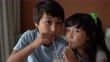Siblings sharing a milkshake at home - 4K stock video