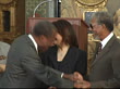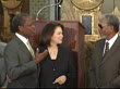 Sidney Poitier, Sherry Lansing and Morgan Freeman at the Sherry Lansing Hand and Footprint Ceremony at Grauman's Chinese Theatre in Hollywood, California on February 16, 2005. (Footage by WireImage Video/Getty Images)
