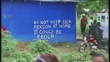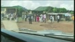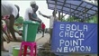Sierra Leone sprinter Jimmy Thoronka has application to stay in the UK refused; T10111401 / 10.11.2014SIERRA LEONE:People having their temperature measured at checkpoint during the Ebola crisisSign painted on wall "Do not keep sick person at home. It could be Ebola"INT CARTRACK from vehicle as along in village