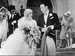 MOT 1927: NEWLY WEDS: Silent film actress Vilma Banky (1898-1991) walking out of church w/ actor Rod La Rocque (1896-1969), standing outside smiling, talking (No SOT).