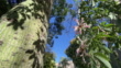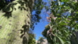 Low angle shot of a silk floss tree trunk with its flowers in the Jardines del Real public park in Valencia, Spain