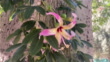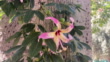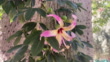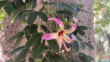 Lonely silk floss tree flower moving with the wind in public park in Valencia, Spain