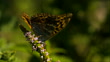 Silver washed fritillary butterfly (Argynnis paphia) takes off from a mint flower - 2000fps (80x slowed down) - HD stock video