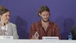 VENICE, ITALY - SEPTEMBER 1: Simon Bennebjerg, Amanda Collin, Nikolaj Arcel, Mads Mikkelsen, Simon Bennebjerg and Anders Thomas Jensen attend the press conference for the movie "Bastarden (The Promised Land)" at the 80th Venice International Film Festival on September 1, 2023 in Venice, Italy. (Footage by Mark Case/Getty Images)