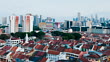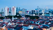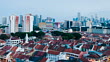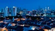 Timeplase of City Scenery of Singapore from the elevated view in daytime, showing, private condominiums, public apartments aka HDB flats, commercial buildings, and foreground is prewar shop house at