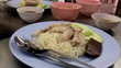 Single plate of Hainanese chicken rice with soup and dipping sauce, showcasing popular Thai food and dining culture. - 4K stock video