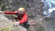 Sir Ranulph Fiennes training for Eiger climb; Low Angle Back View Fiennes climbing Old Man of HoyTop shot Fiennes nearing top of climb