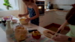 Sisters Making Banana Bread In Kitchen - 4K stock video