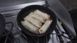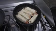 Sizzling Shrimp Spring Rolls Cooking in a Pan on a Camping Stove - 4K stock video