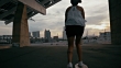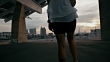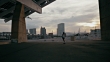 Skate girl runs out of the camera in a urban city scape - 4K stock video