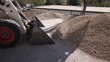 Skid steer loader performing earthmoving work by unloading sand and aggregate materials