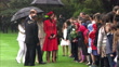 VOICED: Sky News Report on Prince William, Catherine Duchess of Cambridge and Prince George's first Royal Tour of New Zealand and Australia. shows the Duke & Duchess of Cambridge Prince William & Catherine wlk down steps off plane, Catherine holding baby Prince George in her arm, greeted by New Zealand Prime Minister John Key at the bottom of the steps. assistants carry Royal luggage off from the plane, Prince George's Spanish nanny Maria Theresa Turrion Borrallo follows. SYDNEY AIRPORT: the Duke & Duchess of Cambridge Prince William & Catherine (carrying Prince George) wlking through Sydney Airport Transit Area. GOVERNMENT HOUSE, WELLINGTON: ext gvs Maori warriors, traditionally dressed men & women, who dance for the Royals to welcome them. Duke of Cambridge Prince William stands in front of acting Maori warrior. Duke & Duchess of Cambridge standing in field. young child in window of house (not Prince George) on April 07, 2014 in Wellington, New Zealand.