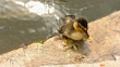 sleepy Duckling at edge of lake