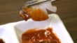 Slices of raw abalone and red chili-pepper paste on the small bowl (Korean food) - HD stock video