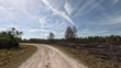 Slow drive on dirt road separating cleared, burned area from scrubby forest - 4K stock video