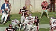 Slow Motion Football game, Tampa Bay Bandits vs Houston Gamblers, Pass over the middle intercepted - HD stock video