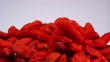 Close up slow motion Goji berry falling on stack falling on stack with white background