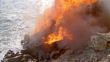 Slow motion low angle tilt down car driving over cliff + exploding / McClain's Law (movie) - HD stock video