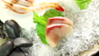 Slow Motion of Chef's hand decorating sashimi on a dish