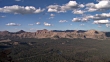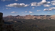 Slow pan from cliff viewing mountain range in the Uintas along Mirror Lake Highway.