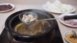 Slowmotion of ginger duck soup cooking with chicken testicles in Taipei - 4K stock video