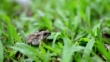 Small toad standing with calm and breathing on lawn - 4K stock video
