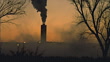 T/L, WS, Smoke rising over field, silhouette of chimney in distance, Farmington, New Mexico, USA - HD stock video