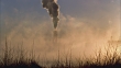 MS, Smoke rising over field, silhouette of chimney in distance, Farmington, New Mexico, USA - HD stock video