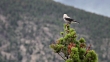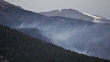 A Clark's nutcracker bird watches the smoky Cow Creek forest fire as it burns in the Mummy Mountain Range in a remote area of Rocky Mountain National Park leaving smoke throughout the park and the Roosevelt National Forest in June, 2010.