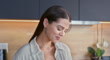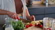 Smoothie, hands and cut fruit in kitchen for healthy nutrition, meal replacement and organic beverage. Blender, woman and banana ingredients in home for vegan diet, drinks preparation and body detox - 4K stock video