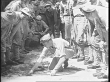 Snakes writhe on ground / soldiers look on as Lieutenant Don Kepler catches a snake / soldiers handle the snake, skin the dead snake, chop it into sections / soldier roast their portion on sticks over a fire / soldiers sit lined up and eat, montage of their reactions.