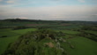 DORSTONE, ENGLAND 18TH May 2023 - Scenic 4k, aerial drone video landscapes of Snodhill Castle and rolling English countryside landscape in background, Dorstone, Golden Valley, Wales / England border, Welsh Marches, United Kingdom.
