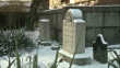 Snow dusts the tombstone of Edgar Allan Poe.