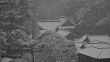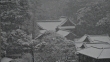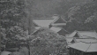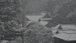 Nezu Shrine in central Tokyo during snowfall.