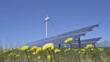 Solar panels and wind turbine producing energy in Simrishamn, Sweden