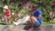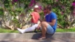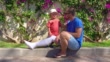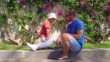 Little boy giving affection with kisses and caresses on his father's bandaged leg