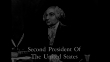 [VO song "America, the Beautiful" throughout] title "Birthdays of Great Americans" superimposed over dark shot of the Great Seal of the United States / superimposed over portrait: "John Adams, born October 19, 1735; Second President of the United States"