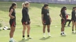 CARSON, CALIFORNIA - FEBRUARY 16: Sophia Smith, Trinity Rodman, and Jaedyn Shaw of the United States side step drill during a USWNT Training session at the United States Training Session at Dignity Health Sports Park on February 16, 2024 in Carson, California. (Footage by Dave Tolley/Getty Images)