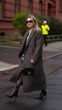 BERLIN, GERMANY - NOVEMBER 27: (SLOW-MO) Sophie Pirrung wears an oversized brown Filippa K coat, COS boots, a black Anine Bing bag and YSL sunglasses on November 27, 2023 in Berlin, Germany. (Footage by Christian Vierig/Getty Images)