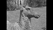 Southern California branch of War Production Board general salvage chief Joseph B MacCaughty stands outside door of Snow White's Cottage at Disney Studios in Los Angeles, California with sledge hammer in hand / Walt Disney opens Dutch door and emerges with cigarette in mouth, they shake hands / walk across lawn, worker with wheelbarrow follows / at two iron statues of deer Disney pets deer's head, raises hammer / hands hammer to MacCaughty, walks away as MacCaughty raises hammer / hammer knocks deer antler, ears, and head off / hands toss metal pieces into wheelbarrow / worker struggles to lift and move wheelbarrow, MacCaughty tosses hammer down, wipes brow, Disney in background leaning against lamp post laughs / Note: Film is warped