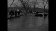 Soviet soldiers trudging across field / soldiers pulling on long rope tied to military truck stuck in mud, wheel spinning / soldiers walking across muddy field carrying bundles of reeds, can see truck stuck in mud / soldiers walking slowly on planks laid down across swampland of Kuban River, people on bank in bg / pan from soldiers crossing on makeshift footbridge to include ones on bank and some working on constructing bridge for vehicles / soldiers stacking artillery shells / LS military trucks stopped on road, few soldiers huddle together / pan up to show wrecked bridge, mud and pools of water, soldier walking in river bed / VS soldiers using logs to construct bridge / officer pointing and barking orders, soldier on bridge hammering bracket / soldiers working on bridge / VS CU soldier hammering, CU brackets / soldiers unloading collapsible boat from truck / VS soldiers carrying long metal brace / soldiers carrying boat trudging through mud towards riverbank / pan from boat partly in water to soldiers pushing it / MS soldiers / CU soldiers' hands attaching maybe ties / soldier runs onto bridge and hangs life preserver ring from rail / vehicle starts across bridge section partly held up by boat / truck moving across ramp onto bridge, river and swampland in bg / vehicle on bridge section laid across two boats being ferried across river, soldiers rowing and using poles to guide it, can see other side of river / truck's muddy wheels moving across log bridge as soldier jumps onto running board / truck and soldiers on bridge / military vehicles and soldiers on the move / vehicles moving on ground, truck passing maybe artillery vehicle / Note: exact day not known