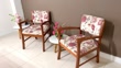 Space with two flowered chairs and a coffee table with flowers