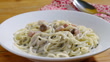 Spaghetti Black Truffle with Cream Sauce and Ham - 4K stock video