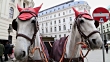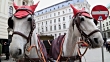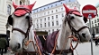 Horses waiting to whisk tourists around the beautiful city of Vienna. Spanish Riding School built in 1735 as an extension to the Hofburg Palace complex (13th Century).