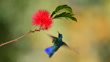 Sparling Violetear, colibri coruscans, feeding in tropical flower, Colombia.