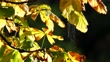 A spiders web backlit by the sun and flying insects in Ambleside park, English Lake District, UK.