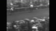 [Sportfolio episode 223] Countdown / Sportfolio intro sequence / title card: "place commercial here" / crowd by track and in stands in bg watching horses, several spectators hold up umbrellas in rainy weather / horses out of starting gate as race begins / Earl Sande rides winner Gallant Fox / Sportfolio end sequence