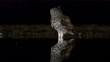 Spotted eagle owl (Bubo africanus) drinking at night. These birds are nocturnal birds of prey, which feed on rodents, insects and other birds. Filmed in Zimanga private game reserve, Kwa-Zulu Natal, South Africa