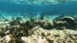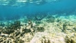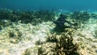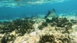 A stingray glides through the water on a coral reef in search of food.